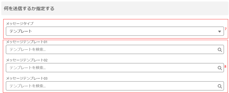 | 8 | テンプレート 上記メッセージタイプのテンプレートが選択された場合表示する。 最大三つのテンプレート選択可能。 |