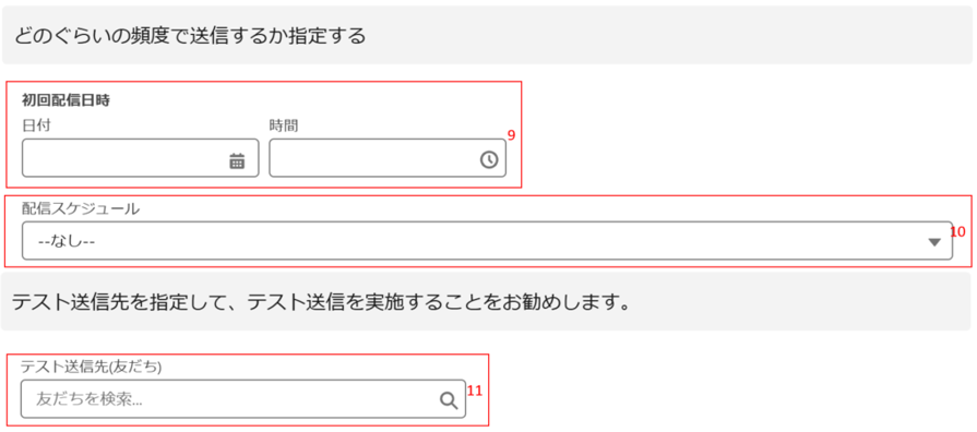 | 9 | 初回配信日時 初回配信の日時を指定する |