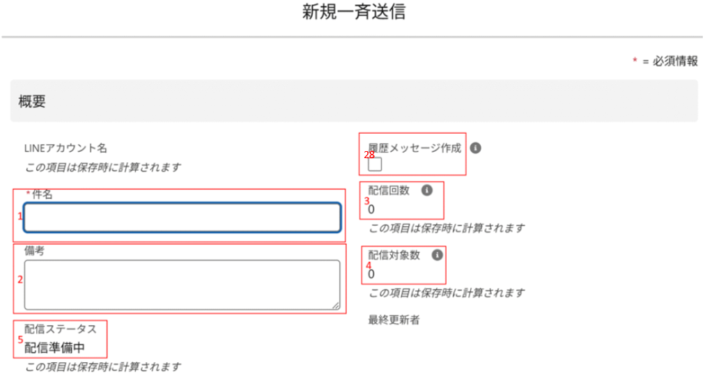 | 28 | 履歴メッセージ作成(v2.6~) チェックを入れた場合、一斉送信友だちのチャット履歴にメッセージが残される |